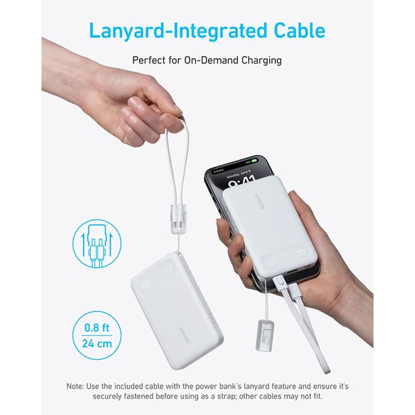 - What You Get: Anker Power Bank (10K, 22.5W), USB-C to USB-C cable, lanyard clip, welcome guide.