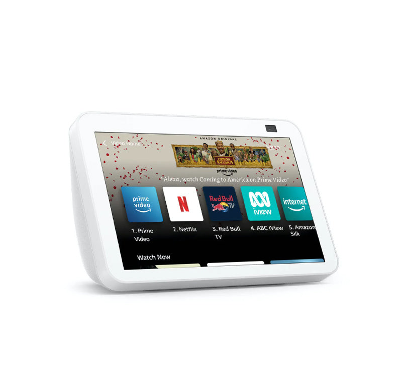 Echo Show 8 connects to Alexa to give you rich stereo sound with vivid visuals on an 8” HD screen. See on-screen lyrics with Amazon Music. Set alarms and timers. Display your favorite photos. Check weather and traffic as you head out. Catch up on news highlights and movie trailers.