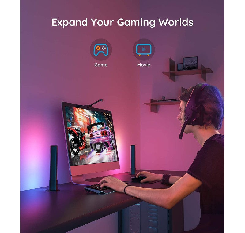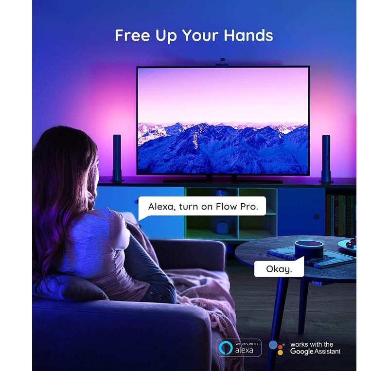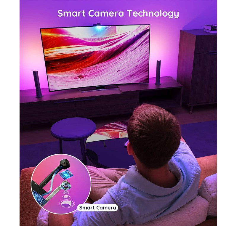 SMART AMBIANCE BACKLIGHTS WITH CAMERA, MUSIC SYNC KIT WORKS WITH ALEXA & GOOGLE ASSISTANT, 12 PRESET MODES LED PLAY LIGHT BAR FOR 27-45 INCH GAMING, PC, TV, ROOM DECORATION -H6054