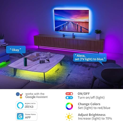 - Voice Control via Alexa and Google Assistant: Support both Alexa and Google Assistant. Voice command to turn lights on and off, set colours or change brightness