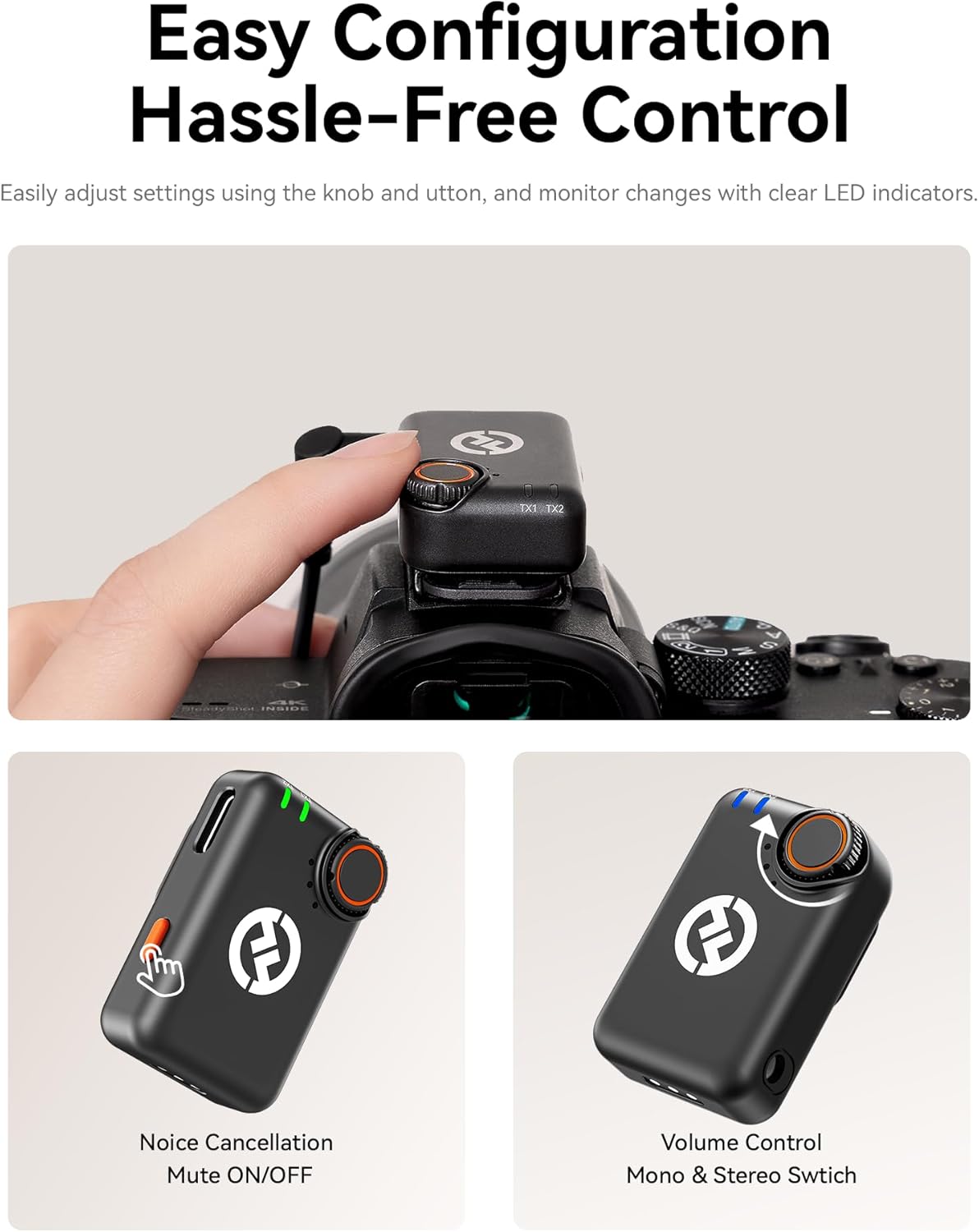 Hollyland LARK M2S Mini Combo (Space Gray, with Camera RX + USB-C RX) 2-Person Wireless Microphone