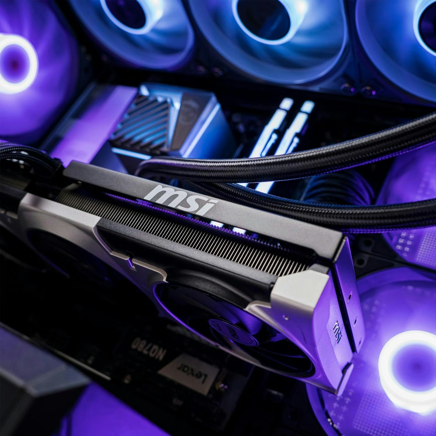 Experience the full potential of the MSI ecosystem with the Gaming PC Powered by MSI. This build is meticulously engineered to harness the synergy between the latest AMD AM5 platform and NVIDIA’s Blackwell architecture. Featuring a wraparound panoramic view and a professional black-out aesthetic, this system is designed for enthusiasts who demand elite gaming frame rates and high-bandwidth productivity in a single, cohesive package.