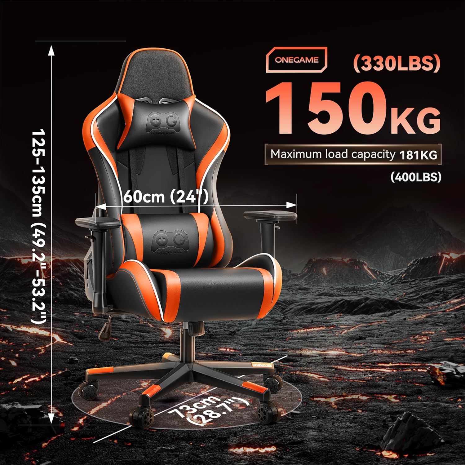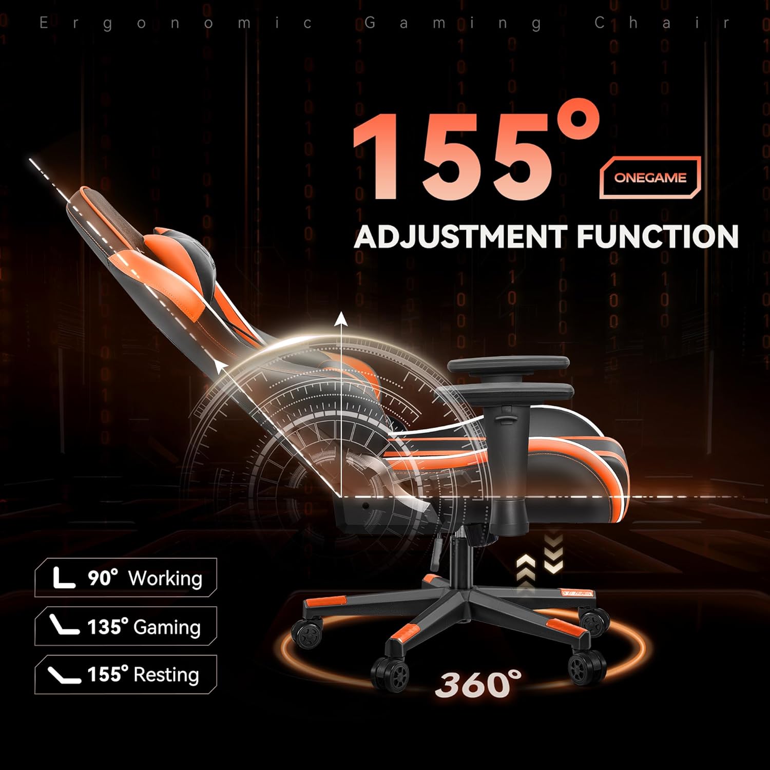 OneGame Gaming Chair, High Back Computer Leather Game Chair 155°Adjustable Backrest Swivel Ergonomic Office Gamer Chair with Lumbar Support-Orange& Black