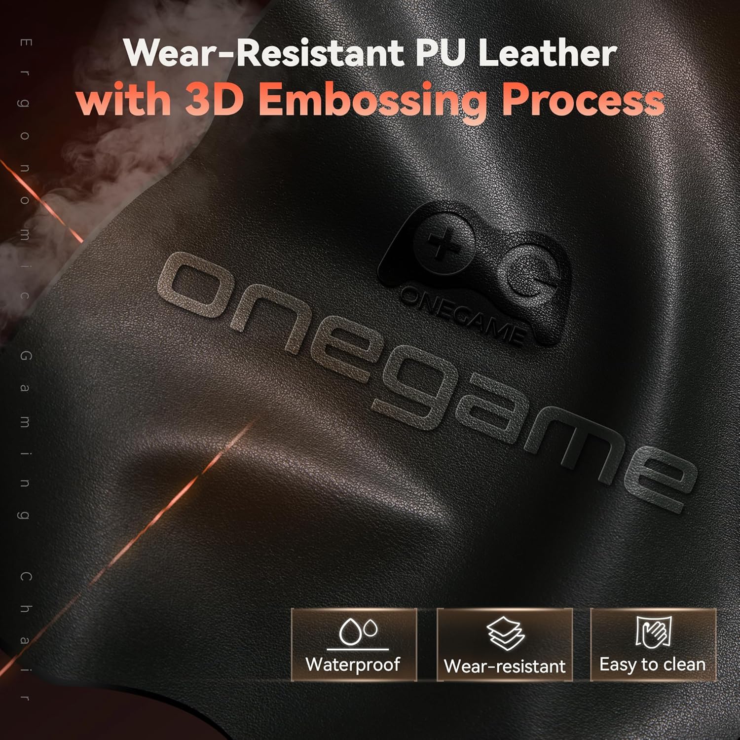 OneGame gaming chair, black orange gaming chair, ergonomic gaming chair, high back office chair, PU leather gaming chair, racing style gaming chair, adjustable gaming chair, gaming chair with lumbar support, swivel office chair