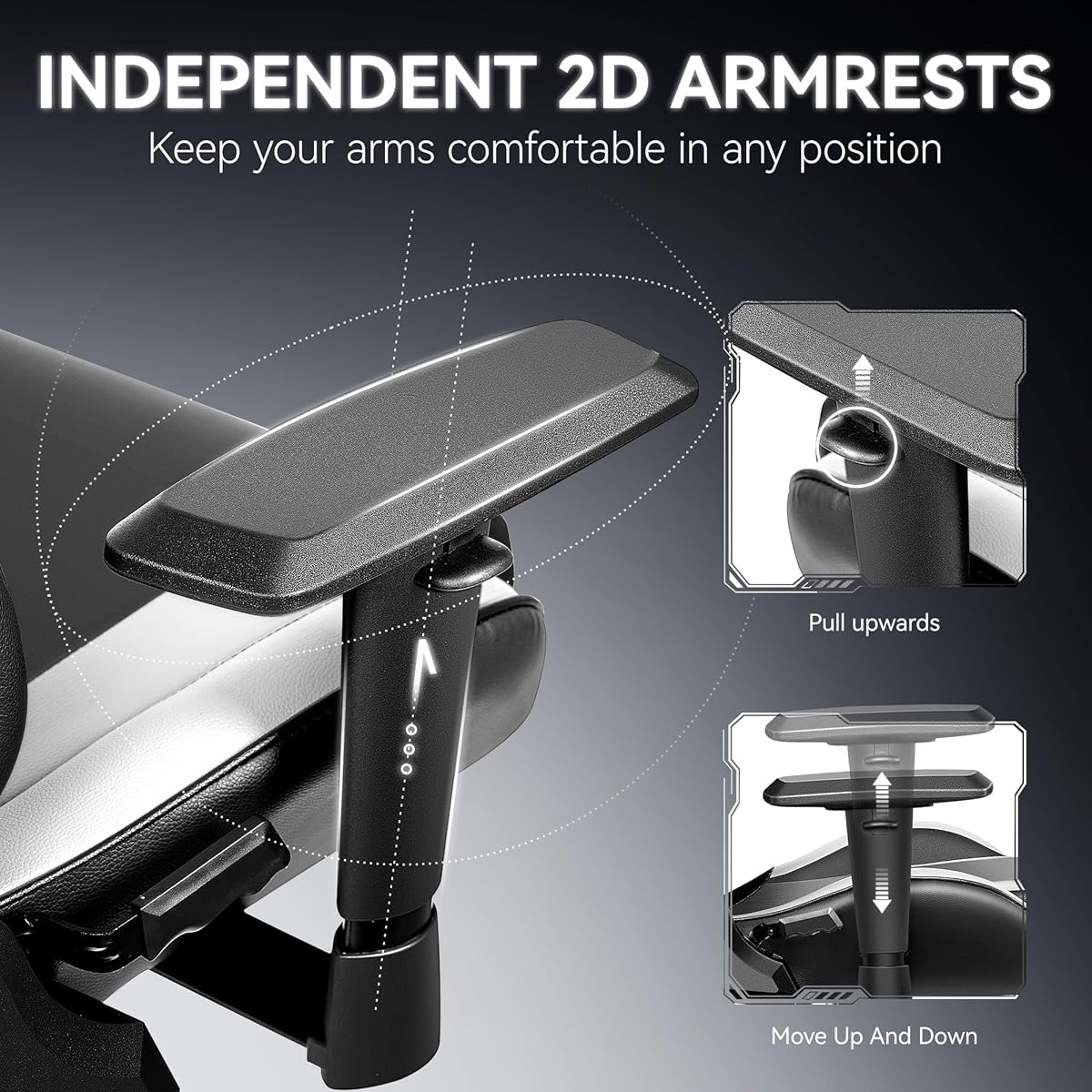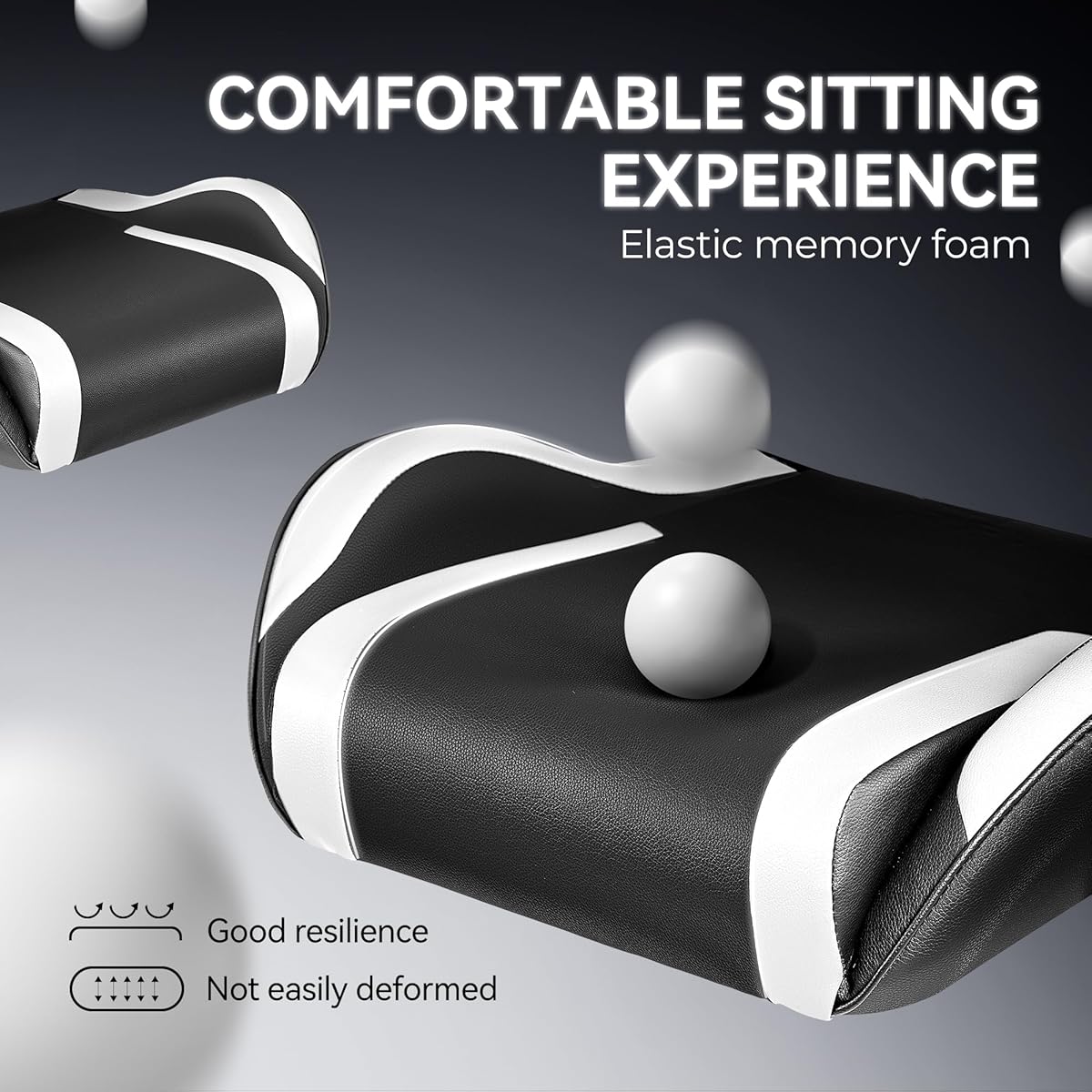 OneGame Gaming Chair, High Back Computer Leather Game Chair 155°Adjustable Backrest Swivel Ergonomic Office Gamer Chair with Lumbar Support-White&Black