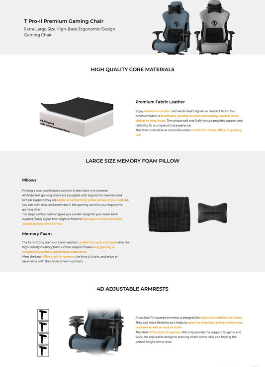 ANDA SEAT T-PRO II PREMIUM GAMING CHAIR, -black
