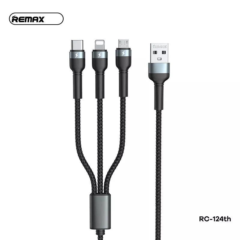3 in 1 Multi USB Charger Charging Cable Remax Type-C For iPhone Micro-USB Black