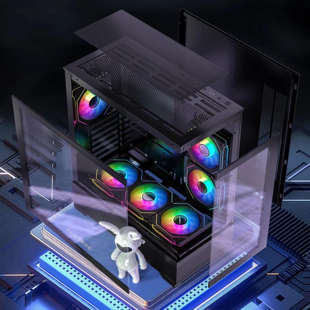 AceGeek Cruiser L460 Computer Case, Up to 360mm Radiator & 9x Fan Support, 0.7mm Tempered Glass.