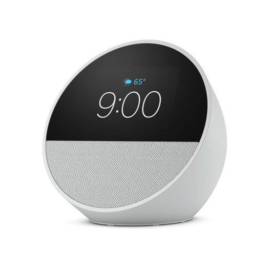 All-new Amazon Echo Spot (2024 release), Smart alarm clock with vibrant sound + Alexa, Glacier White