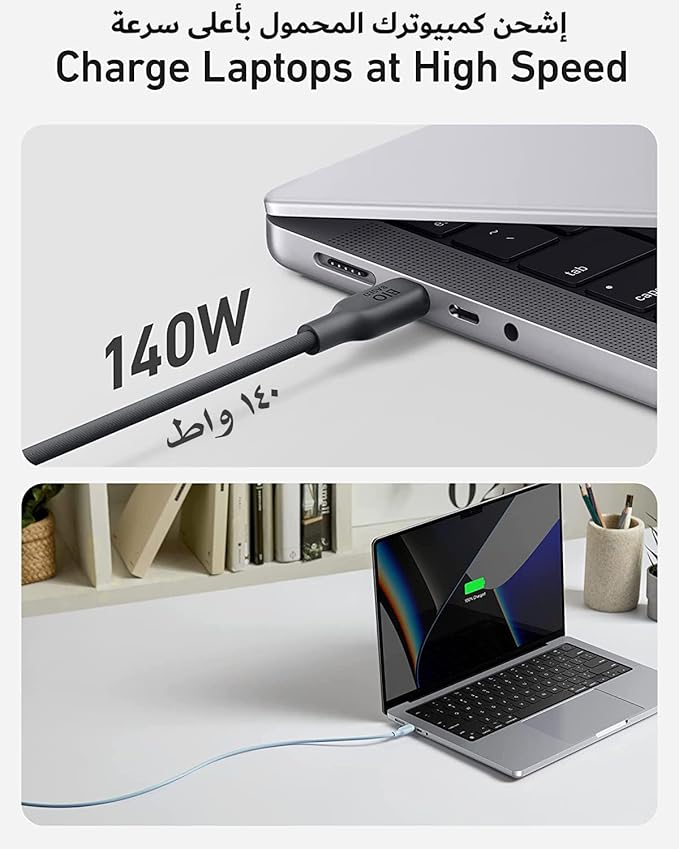 - Fast Charge Ready: Supports a power output of 140W when paired with a 140W wall charger. (This cable does not support media display.)