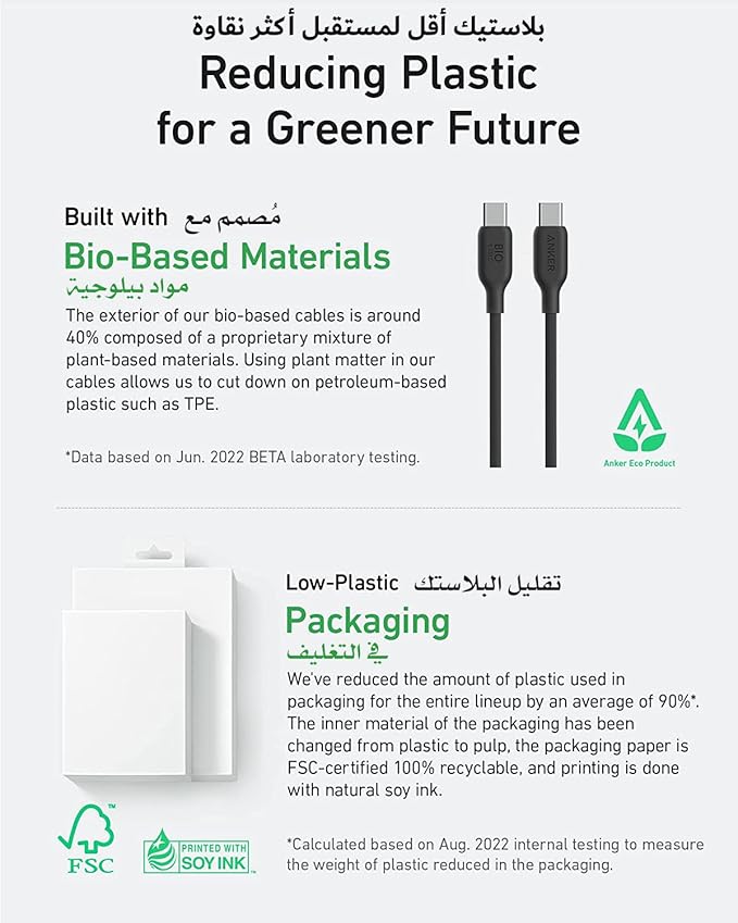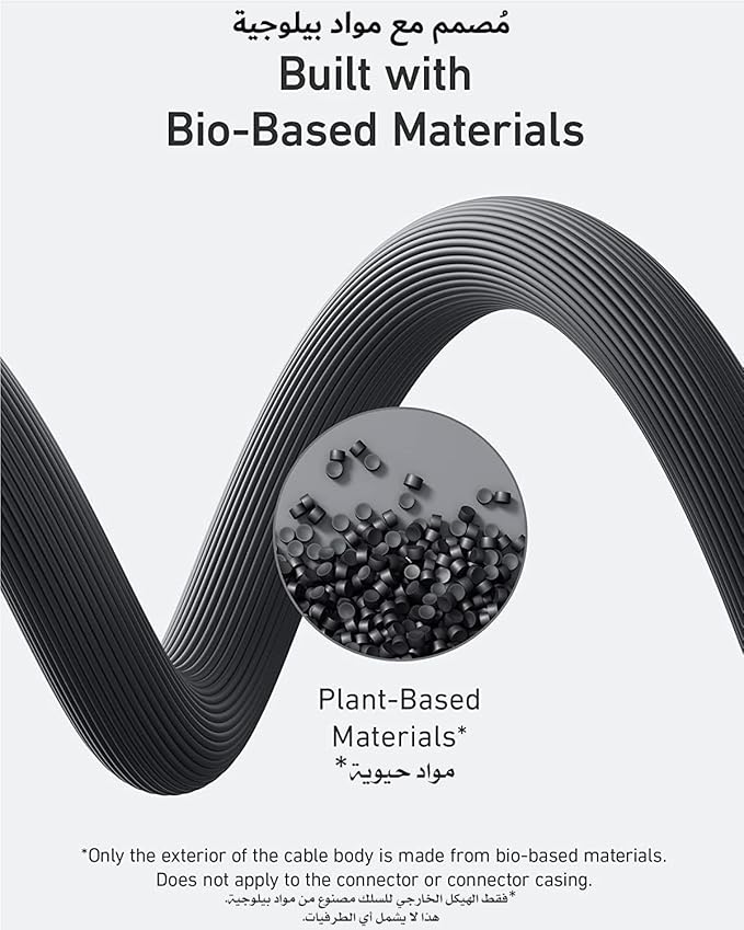 - Bio-Based Design: The exterior of the cable body is built using bio-based materials from plants like corn and sugar cane.