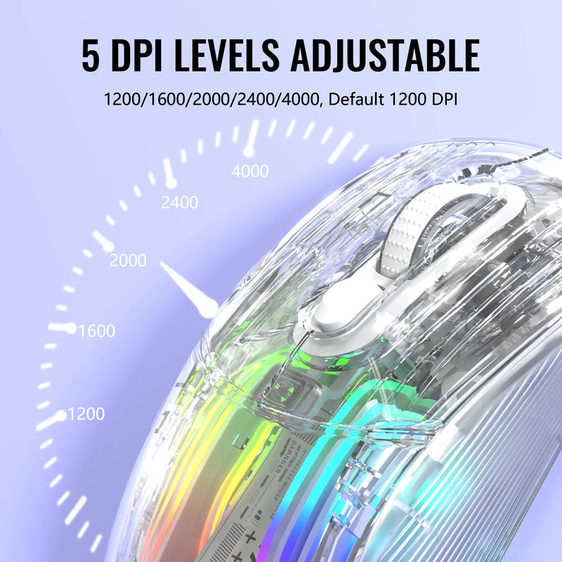 This mouse has silent left and right buttons, reducing noise by up to 90%, so whether you're gaming late at night, in the library or in a cafe, you can use the mouse as you wish without worrying about disturbing others with the sound of your clicks. 5 adjustable DPI (1200/1600/2000/2400/4000), which makes your control more smoothly and freely.