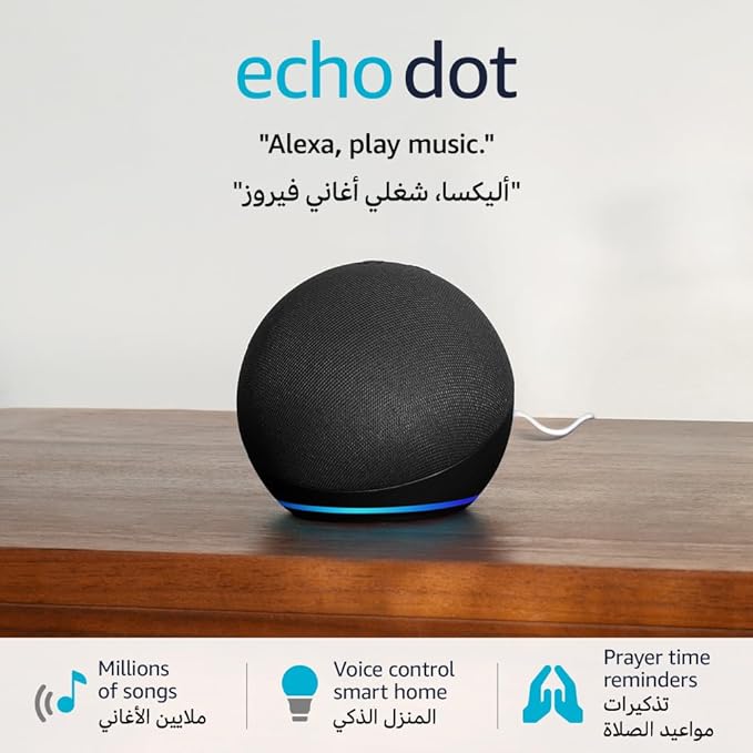 • Voice-controlled speaker that uses the Alexa voice service to play music, recite the Holy Quran, set timers and alarms, make your home smarter with compatible devices, and more.