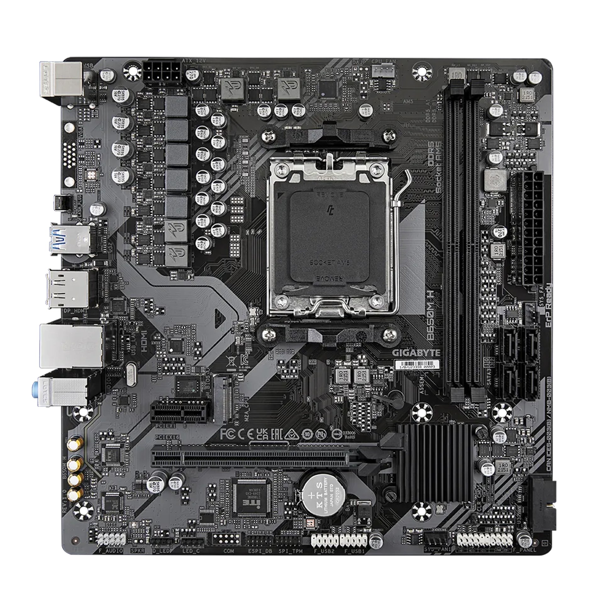 GIGABYTE B650M H AM5 mATX Motherboard, AMD B650 Chipset, 2 x DDR5 DIMM - 128GB Max, Realtek GbE LAN, High Definition Audio, PCIe x16, 1x M.2, HDMI, DP, 4 x USB 2.0