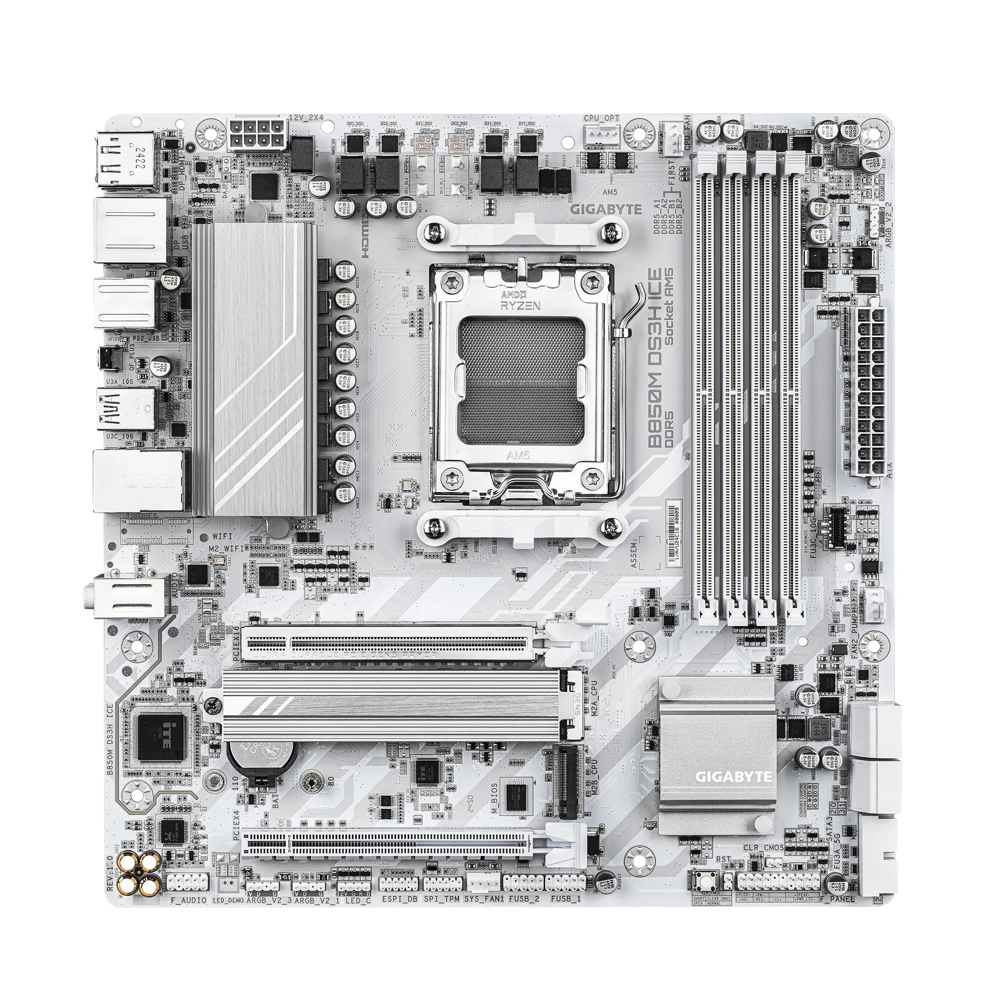 GIGABYTE B850M DS3H ICE AM5 M-ATX Motherboard, AMD B850 Chipset, 4x DDR5 DIMM Slots, Up to 256GB Max Memory, 1x PCIe 5.0 x16, 2x M.2 Slots, White