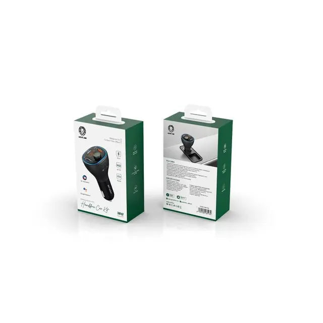 Green Lion Wireless Hands-Free Car Kit with Built-In FM Transmitter ( QC3.0 + PD 20W ) 38W - Black