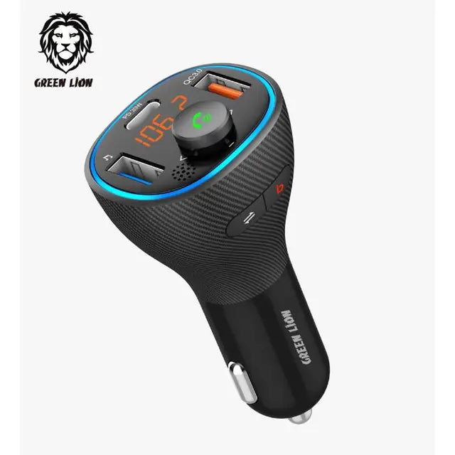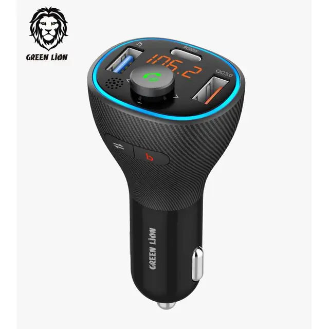 Introducing the Green Lion Wireless Hands-Free Car Kit. It is the ultimate solution for safe and convenient calling in your vehicle. This kit features a built-in FM transmitter with QC3.0 and PD 20W fast charging capabilities. It delivers a total of 38W for efficient and rapid charging of your devices while on the go. This Green Lion Bluetooth car charger has 3 USB ports. It provides a 38W output at max. You can charge three devices simultaneously. The USB C port can provide PD and QC fast charging speed with PD20W and 38W. This is 4 times faster than conventional car chargers. It's compatible with Siri and Google Assistant. You don't have to take your phone while driving. Everything can be navigated with voice commands. The car Bluetooth transmitter has an advanced Bluetooth version. It transmits at speed, providing faster and stronger pairing. It also offers more stable sound than other normal products on the market. This Bluetooth car kit gives you crystal clear calls. It helps you drive more safely by switching seamlessly between incoming calls and music.