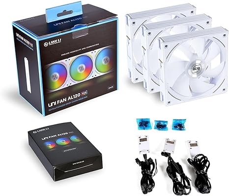 Lian Li UNI Fan AL120 3 Pack White - with Controller (ARGB 120mm LED PWM Daisy-Chain) -AL120-3W,UF-AL120-3W