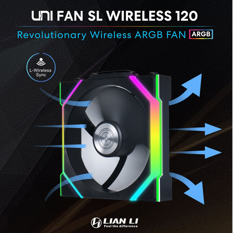 The UNI FAN SL Wireless series has made another revolutionary breakthrough in making cable management easier and unifying controllers across different devices. The UNI FAN SL Wireless utilizes a 2.4 GHz wireless signal to control its lighting effects and fan speed to further improve your PC building experience.