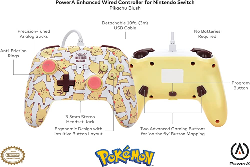 PowerA Enhanced Wired Controller for Nintendo Switch – Pikachu Blush