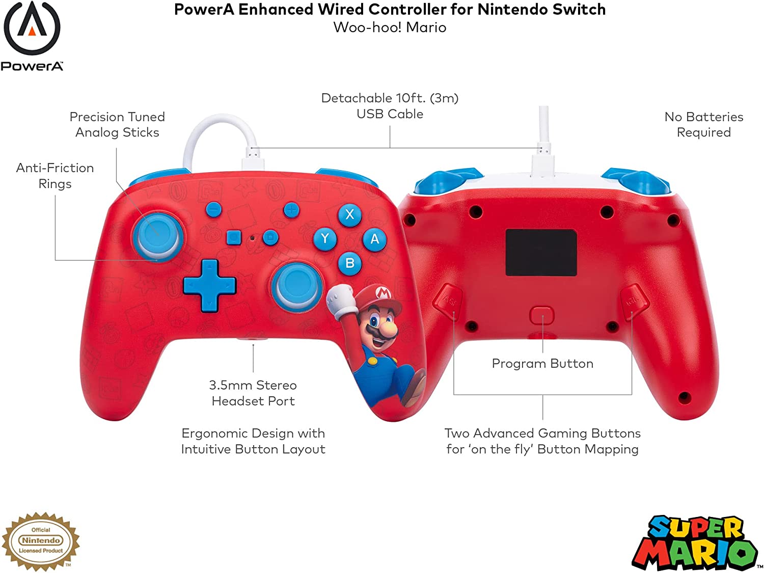 PowerA Enhanced Wired Controller for Nintendo Switch –Mario