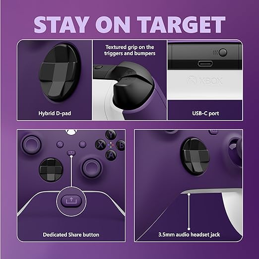 - XBOX ASTRAL PURPLE WIRELESS CONTROLLER: Experience the modernized design of the Xbox Wireless Controller in Astral Purple, featuring sculpted surfaces and refined geometry for enhanced comfort during gameplay with battery life up to 40 hours.*