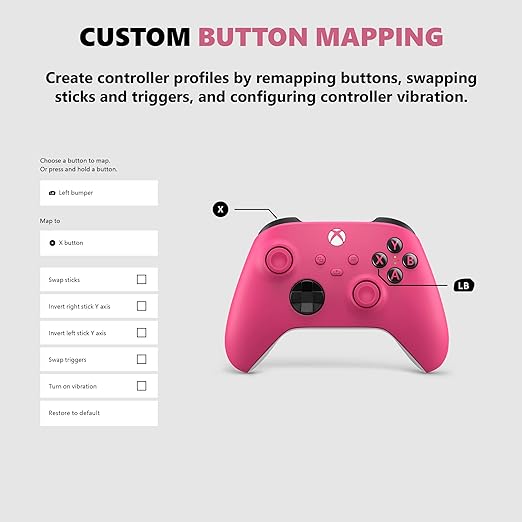 - CUSTOM BUTTON MAPPING: Make the controller your own by customizing button mappings with the Xbox Accessories app.*