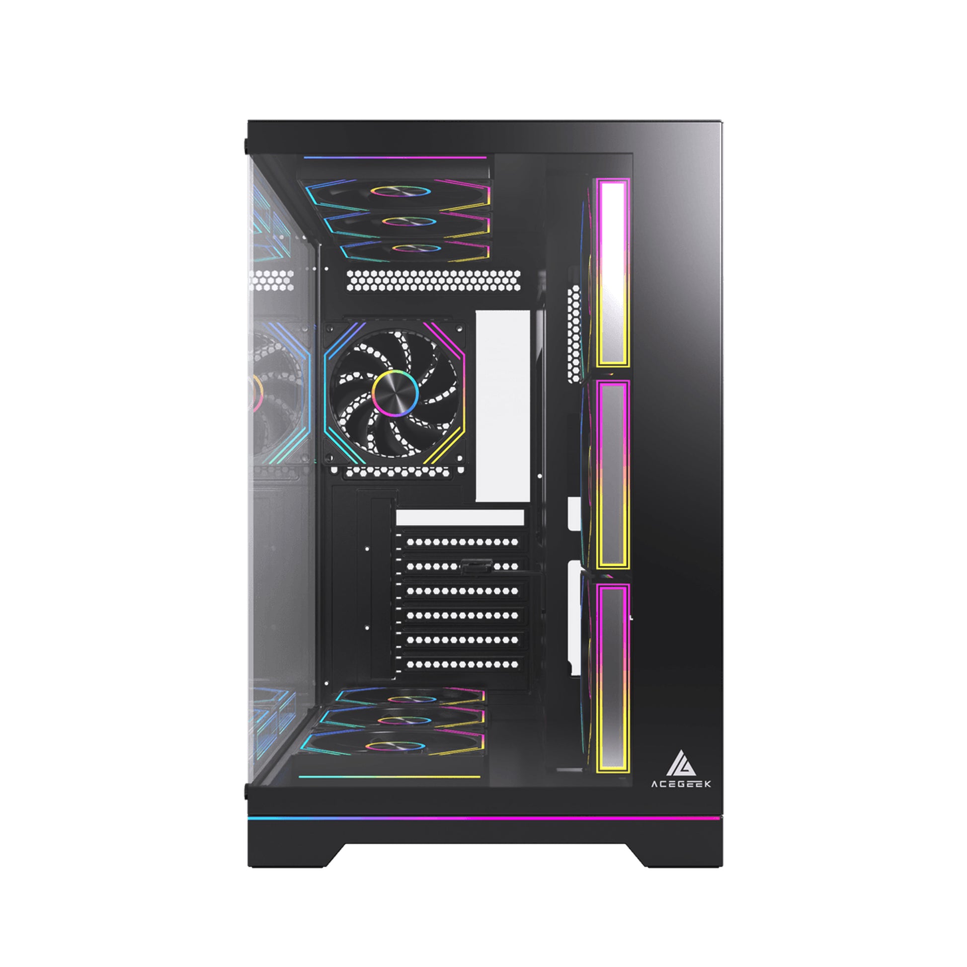 Acegeek Mercury R425X ATX Computer Case, Up to 360mm Radiator & 10x Fan Support, Dual Side Full Tempered Glass, 0.7mm SPCC Material, USB 3.0, USB 2.0 x2, HD Audio, Black