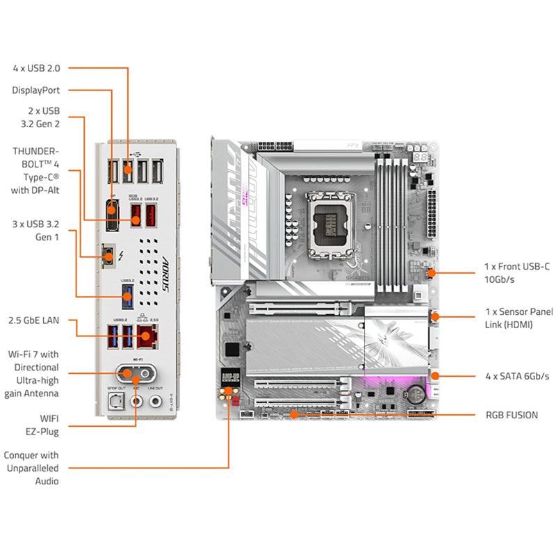 GIGABYTE Z890 Aorus Elite Wi-Fi 7 ICE,LGA 1851 DDR5 ATX Motherboard,4x Dimm Slot,Up To 256gb Max Memory,Wi-Fi 7 & BT 5.4,Pcie 5.0 X16, 4x M.2 Slot,White