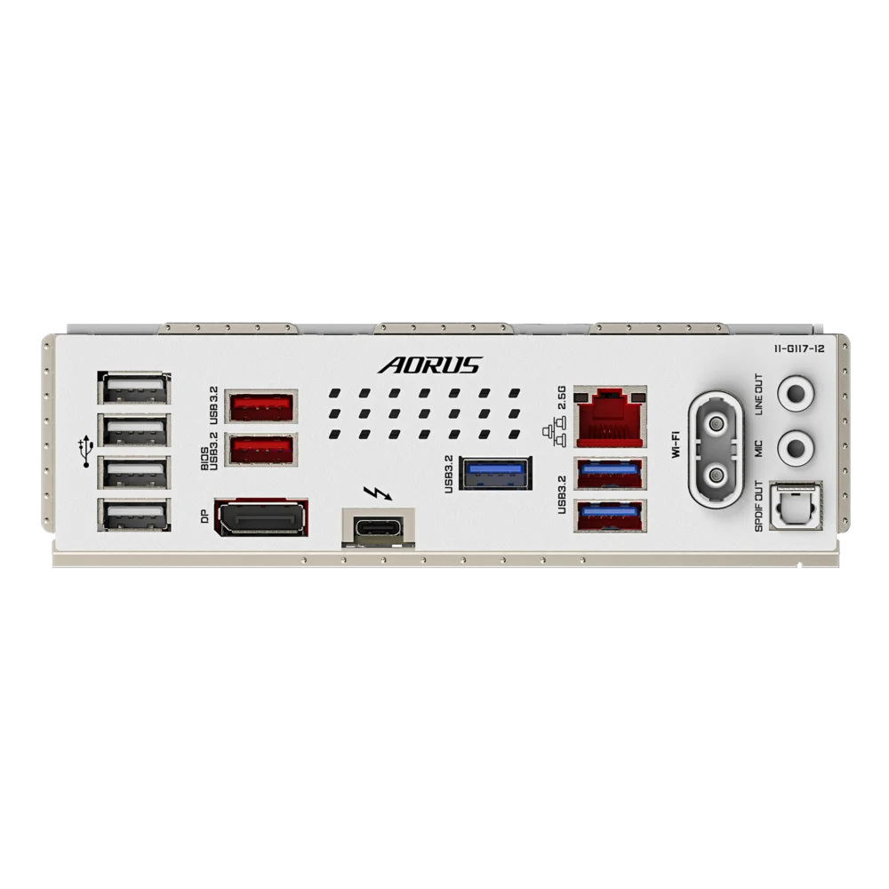 | Back Panel Connectors | Thunderbolt™ 4, USB 3.2 Gen 2, USB 2.0, DisplayPort, RJ-45, S/PDIF Out, audio jacks, antenna connectors. |
