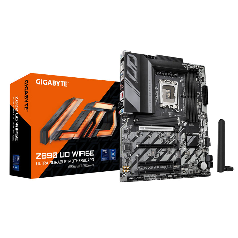 GIGABYTE Z890 UD WIFI6E Motherboard - Supports Intel Core Ultra (Series 2) CPUs, 12+1+2 Phases VRM, up to 8800MHz DDR5 (OC), 1xPCIe 5.0 + 2xPCIe 4.0, Wi-Fi 6E, 2.5GbE LAN, Thunderbolt 4