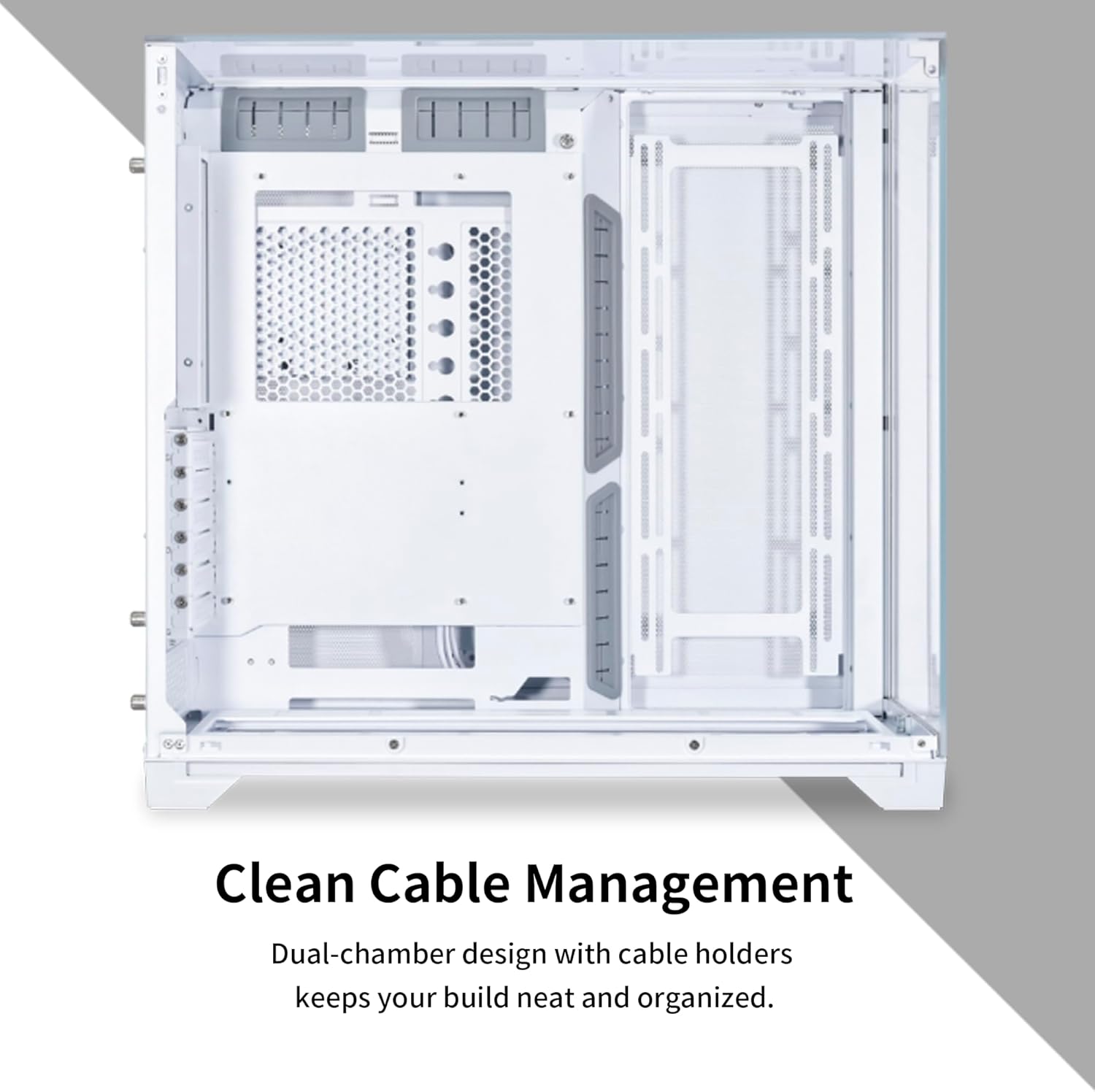 Lian Li O11 Vision Compact Tower Computer Case, Up to 360mm Radiator & 9x 120mm Fan Support, 1x 4mm & 1x 3mm Tempered Glass Panels, Steel & Aluminum Materials,White