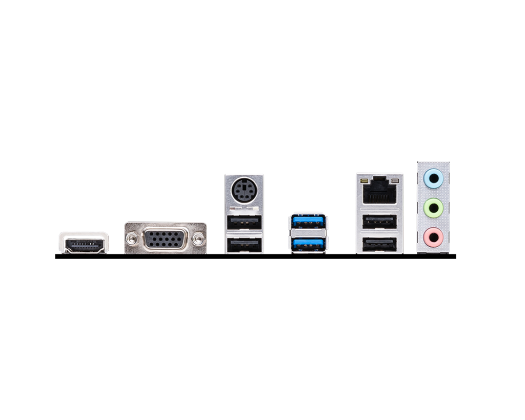 | Onboard Graphics | 1x HDMI™ Support HDMI™ 1.4 with HDR, maximum resolution of 4K 30Hz* 1x VGA Support VGA, maximum resolution of 2048x1536 50Hz, 2048x1280 60Hz, 1920x1200 60Hz *Available only on processors featuring integrated graphics. Graphics specifications may vary depending on the CPU installed. |