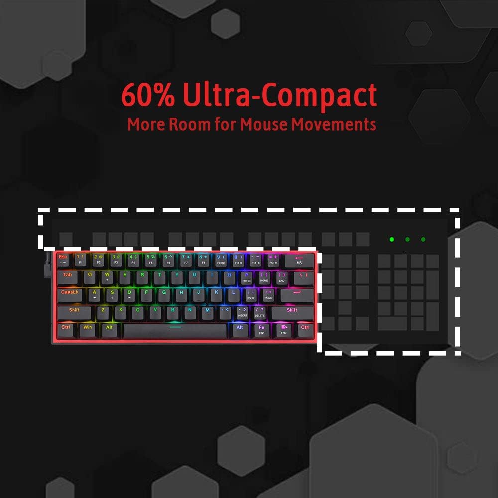 Redragon K617 Fizz 60% Wired RGB Gaming Keyboard, 61 Keys Compact Mechanical Keyboard,